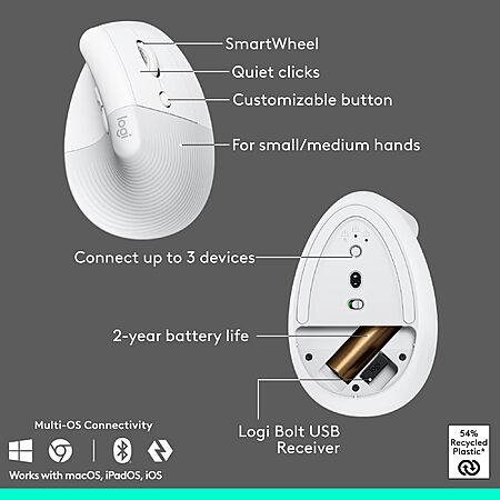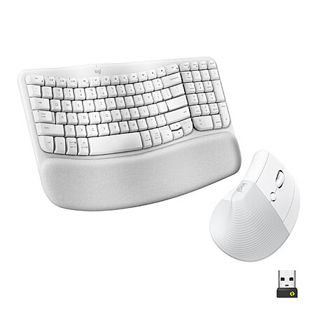 Logitech Wave Keys & Lift Vertical Mouse - Ergonomic Wireless Keyboard and Mouse Combo Off-White $99.99