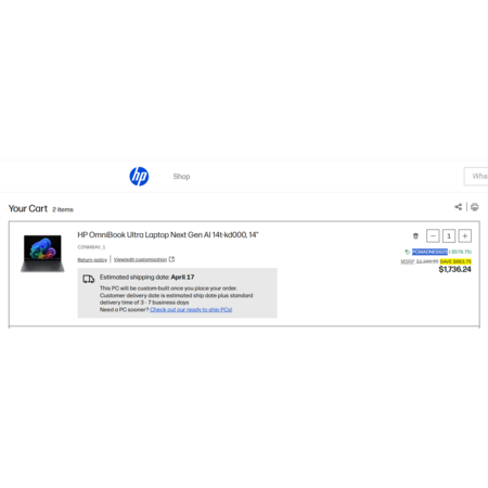 HP OmniBook Ultra 14" Intel Core Ultra X9 388H, 32GB DDR5x, 1TB PCIE Gen 5, 3k OLED - $1734 with 25% code and EPP/EDU/Frontline Heroes 5% discount $1736.24
