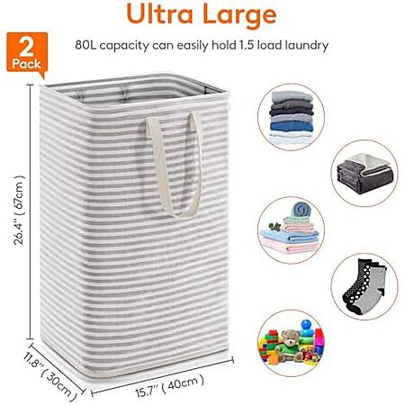 $11.99* | 2-Pack 80L Lifewit Collapsible Laundry Baskets w/ Handles (Grey) at Amazon
