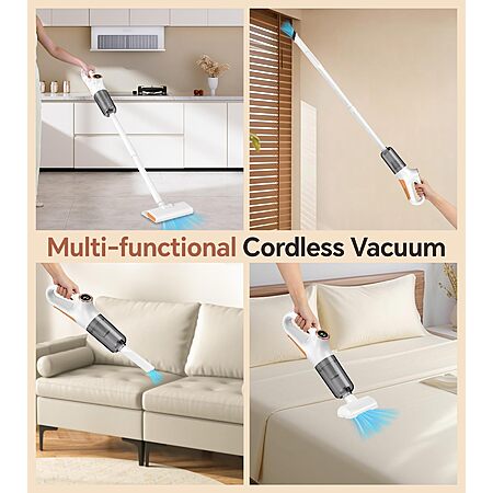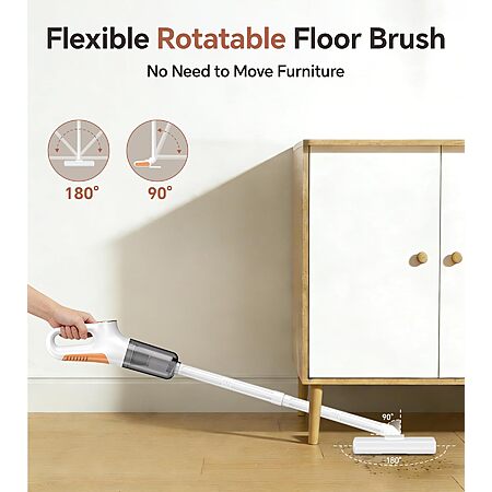 【Lightweight Control】The body weighing just 1.5kg, allowing the cordless stick vacuum to glide smoothly across floors, furniture and carpets. The cordless design moves effortlessly from room to room, delivering whole-house cleaning in a comfortable and efficient manner.