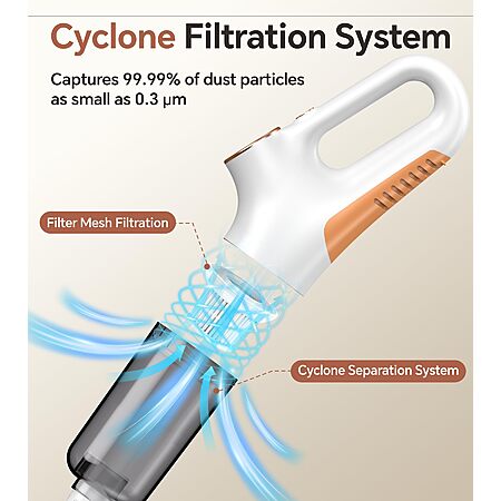 【Fully Sealed Cyclone Filtration System】The floor vacuum cleaner adopts new cyclone separation technology and high-density HEPA filtration, which can capture 99.99% of dust particles as small as 0.3µm, filtering out fresher air, the HEPA filter is washable and reusable, and the service life is twice as long as the traditional filtration system.