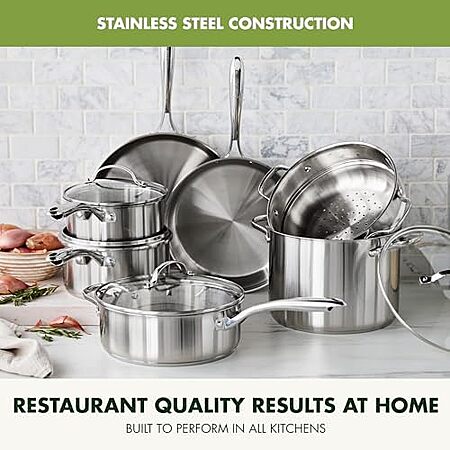 $125.99 | 11-Piece GreenPan Stainless Steel Cookware Set (Silver) at Amazon