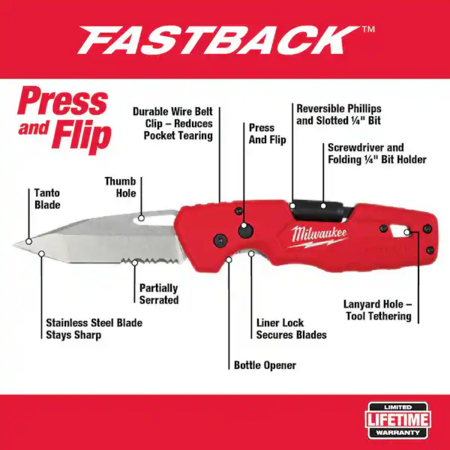 Milwaukee FASTBACK 5- In-1 Folding Knife with 3 in. Blade and FASTBACK 6-in-1 Folding Utility Knife (2-Piece) $35.97