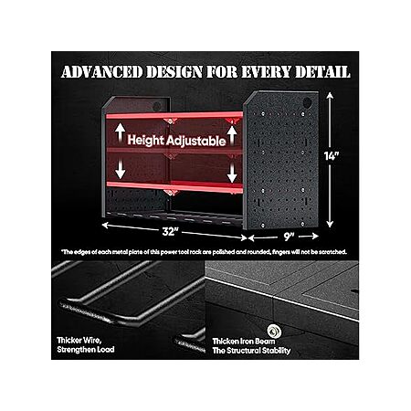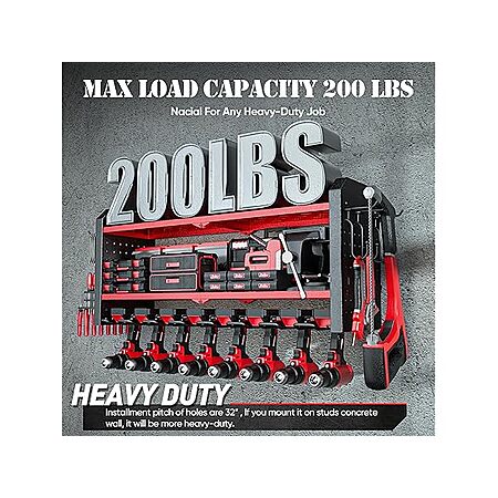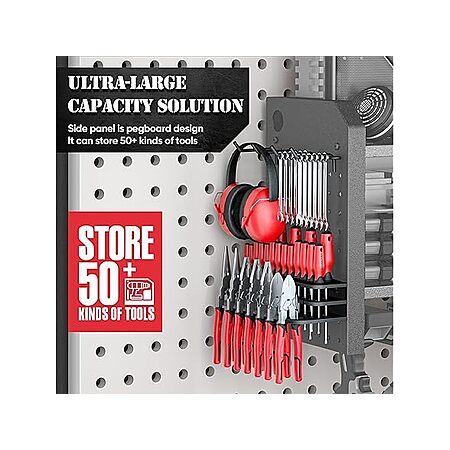 - Store 50+ Tools: 3-tier design with 8 dedicated slots and pegboard side panel. Includes 4 hooks and 8 S-hooks for versatile storage.