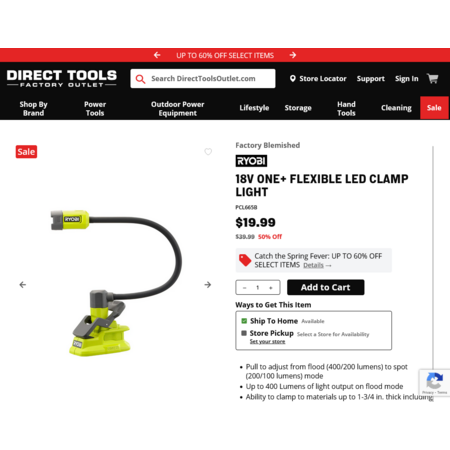 - Includes: (1) PCL665 18V ONE+ Flexible LED Clamp Light and Operator's Manual
