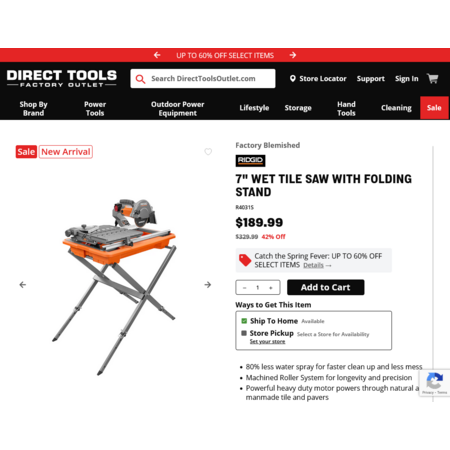 RIDGID 7" Wet Tile Saw with Folding Stand R4031S. Factory Blemished. Free Shipping. $189.99