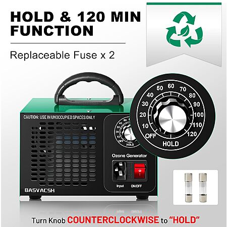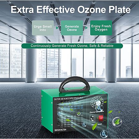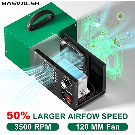 Model: Ozone Generator 45,000mg/h, Industrial/Home O3 Air Purifier Deodorizer for Areas of 2500 Square Feet - High Capacity Ozone Machine Air Ionizer Odor Clean for Rooms, Smoke, Cars, Pets (Green)