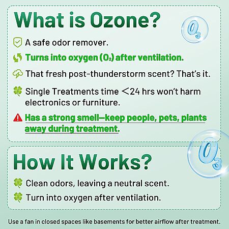 Just to be sure everyone understands - People/Pets/Plants MUST BE VACATED from the space when this is in use. The ozone it produces displaces oxygen and can possibly KILL many living things.