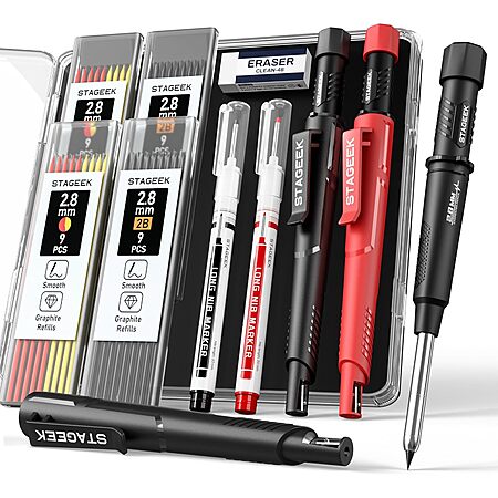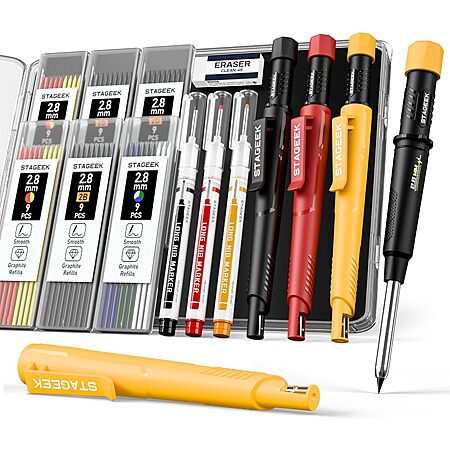 STAGEEK Mechanical Carpenter Pencil Set w/ Sharpener, Refills & Pouch (Various) for $12.99 - 50% off when you enter the coupon code