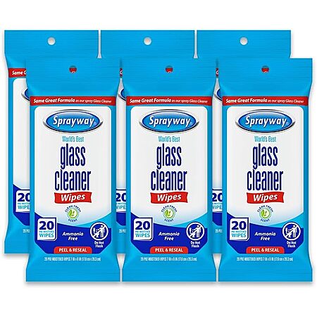 $9.49 | 6-Pack 20-Count Sprayway Glass Cleaner Wipes at Amazon