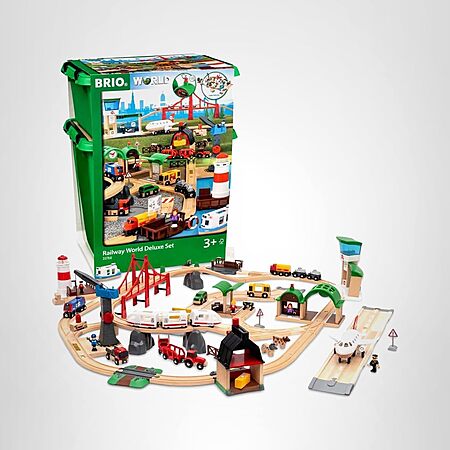 BRIO World Railway World Deluxe Set - 106-Piece FSC-Certified Wood and Accessory Train Set - Works with All Wooden Train Sets $297.49