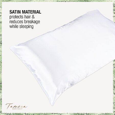 - WHITE SATIN PILLOWCASE: The perfect fit for most standard-size pillows, this plush satin standard pillowcase allows your hair to glide naturally without friction, tames frizz, and reduces breakage as you sleep.