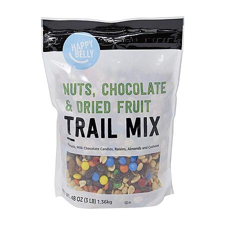 Model: Amazon Brand - Happy Belly Nuts, Chocolate & Dried Fruit Trail Mix, 48 Ounce