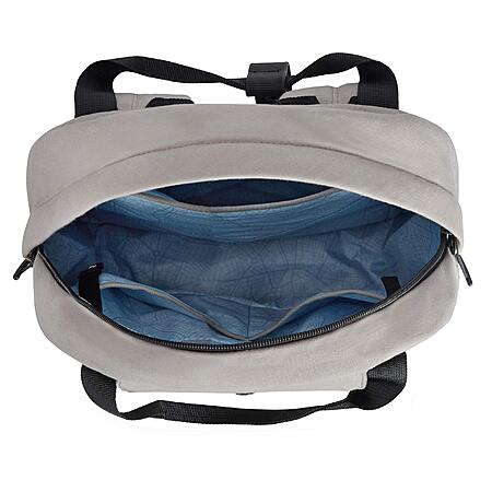 - Wide opening interior compartment includes padded sleeve for 14" laptops or tablets, a zippered pocket and slip pockets, and key clip.