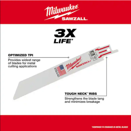 SAWZALL blades Tough Neck design strengthens the blade's tang and minimize breakage