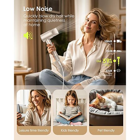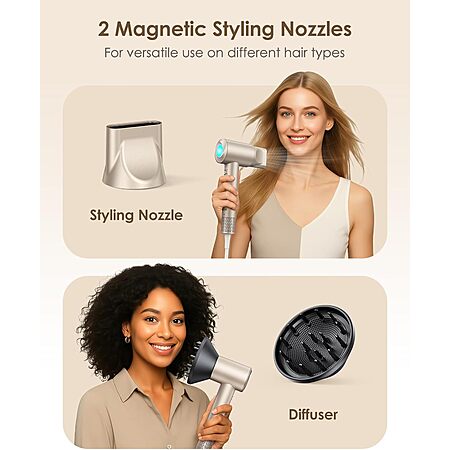 Hair Dryer Ionic with Diffuser - 160,000 RPM Professional High-Speed Blow Dryer, 500M Negative Ions Fast Drying, Lightweight, Low Noise - amazon $29.99