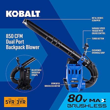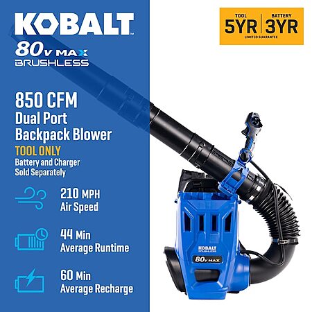 Kobalt 80V 850-CFM 210-MPH Cordless Battery Backpack Leaf Blower (Tool Only) $189 + Free Shipping
