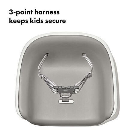 The OXO Tot Nest Booster Seat gives kids as young as nine months a secure seat at the family table. With a soft, removable cushion and high back and sides, the Nest Booster transforms any grown-up chair into a child-friendly seat. Two side-release buckles keep kids securely strapped in (and prevent them from escaping!). The back and bottom chair straps are adjustable for a secure fit on different chair styles and sizes, and the non-slip feet keep the Booster Seat stable while protecting chairs from scratches. The 3-point harness keeps even the wiggliest tot secure and adjusts as your child grows. The built-in handle allows for easy transport, and the straps store neatly in a compartment under the Booster Seat when not in use.