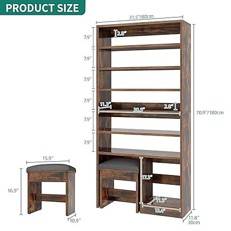 Model: YITAHOME Shoe Cabinet with Hidden Bench, 8 Tiers Free Standing Shoe Racks, 70.9'' Tall Shoe Cabinet with Open Storage & High Boots Cubby for Entryway, Living Room, Rustic Brown