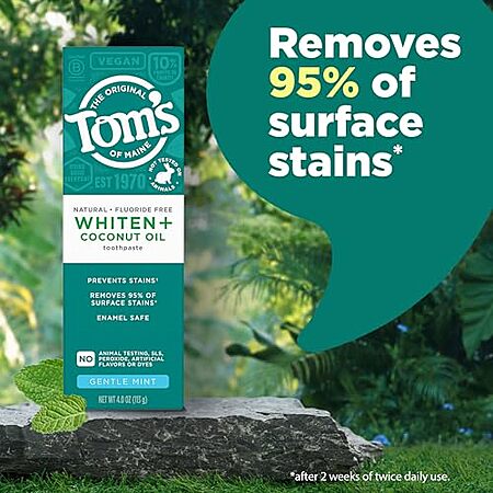 [SnS, AC] $2.72 | 4-Oz Tom's of Maine Whiten Plus Coconut Oil Fluoride Free Toothpaste at Amazon