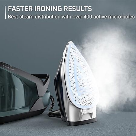 Model: Rowenta Iron Steamer for Clothes, Master Steam Station, Professional Steam Iron For Clothes with Stainless Steel Soleplate 57 oz, 400 microsteam holes, Built-In Pump, 1750 watts, Black Green, VR8338