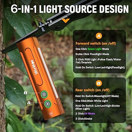 [AC] $34.09* | Wurkkos 1200 lumens 6-in-1 Magnetic Flashlight w/ White, Green & UV Light (HD01 PRO) at Amazon