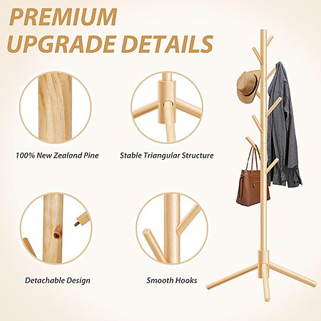 - 【100% Premium New Zealand Pine】Our coat racks are made of high quality New Zealand materials, which are smooth and burr free to protect your hands. High quality solid wood makes the coat tree strong and durable. The bottom triangle structure provides strong stability.