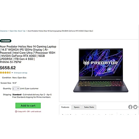 This seems like the best deal going for a "gaming" laptop $658, they are over $850 from Acer refurbed, albeit with a RTX 4070