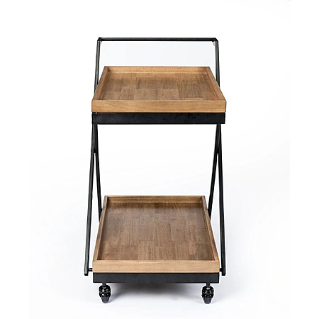 - Durable Construction: A contemporary design that consists of two removable wood trays and a black metal frame.