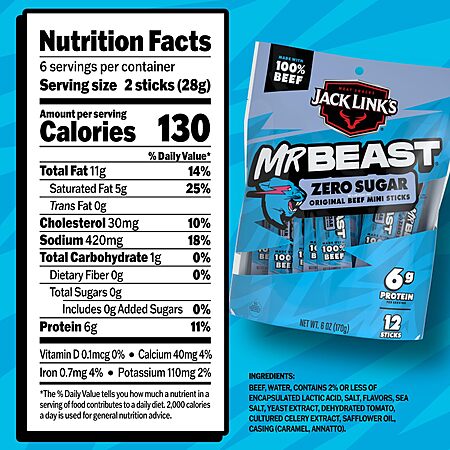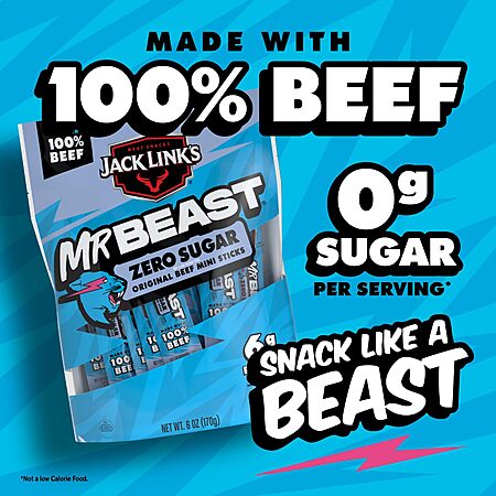 12-Count Jack Link's Mr. Beast Mini Meat Sticks Zero Sugar (6-Ounce) $5.74 w/ S&S + Free Shipping w/ Prime or on $35+