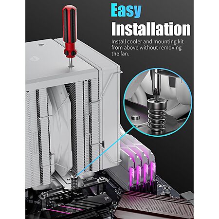 -Easy Installation: The cpu air cooler is designed for easy installation without the need to remove the existing fan, saving you time and effort. Its innovative design allows for a quick setup, ensuring optimal cooling performance in minutes.