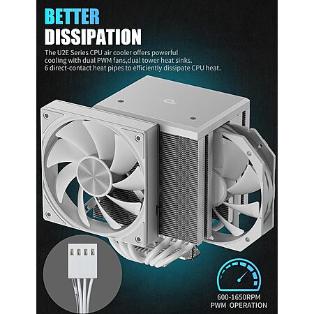 -Efficient Cooling Performance:The innovative dual tower structure of this cpu cooler provides superior cooling efficiency and airflow even when playing blackmyth wukong, allowing for better thermal management and lower temperatures.Equipped with 6 high-performance heat pipes for optimal heat dissipation, this cooler for PC ensures your CPU stays cool during intense workloads and gaming sessions.
