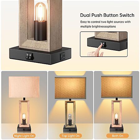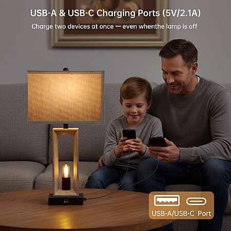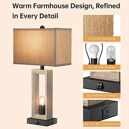 Model: PACOLIT P Modern Farmhouse Table Lamps Set of 2 for Living Room, Entryway, Bedroom Nightstand - USB-A/C Charging Ports & 3 Color Temperature Adjustable, 4 LED Bulbs Included