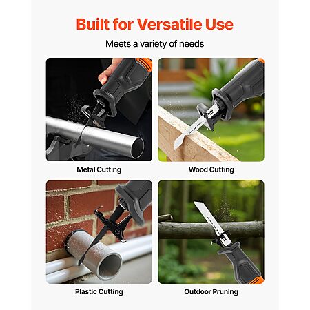 - Multi-Scene Ready: The electric reciprocating saw tackles wood cutting, plastic cutting, metal cutting, and outdoor pruning with ease. Thanks to its deep-cut capacity, it handles everything from home DIY to demanding on-site tasks