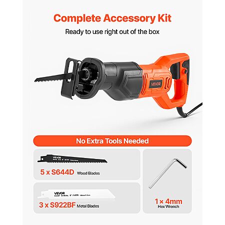 Amazon.com has VEVOR 6 Amp Corded Reciprocating Saw, 3/4" Stroke Length, Power Reciprocating Saw with Variable Speed, 3000 SPM, 8 Blades & Bag Included, for Wood, Metal, and Plastic Cutting on sale for $32.31.
