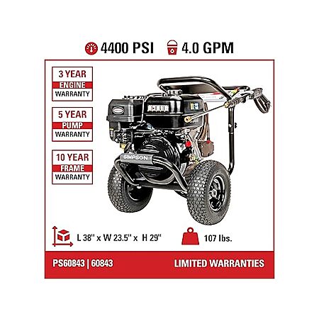 Simpson 4400 PSI Gas Pressure Washer, 4.0 GPM Commercial Power Washer, Cold Water, 50' Hose, PowerShot, 49-State Compliant (PS60843) at Woot!
