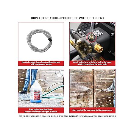 - PRO PRESSURE WASHER ACCESSORIES: Five quick-connect pressure washer tips (0°, 15°, 25°, 40°, and soap nozzle) cover tasks from stripping paint to car cleaning; Rear-load M22 pressure washer gun and 31" spray wand included