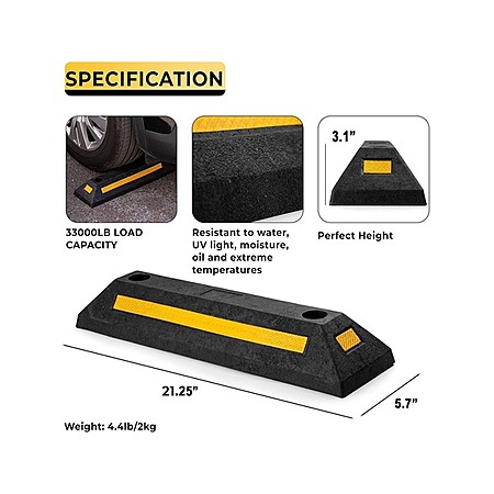 21'' Zone Tech Heavy Duty Rubber Parking Guide - 2 Pcs Car Garage Wheel Stoppers with Reflective Yellow Tape at Woot! $21.99