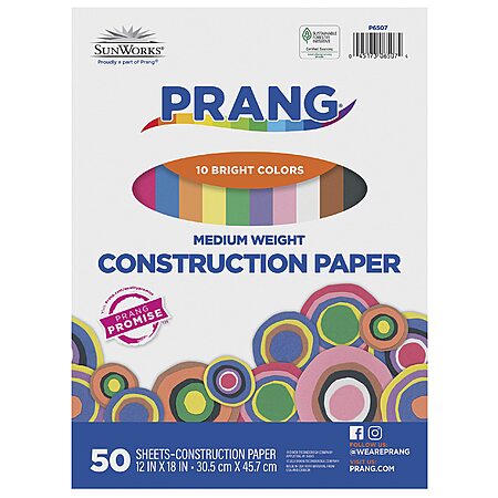 50-Sheet 12" x 18" Prang Construction Paper (10 Assorted Colors) $2.39 + Free Shipping w/ Prime or on $35+