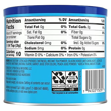 6-Pack 2.9-Oz Lipton Zero Sugar Iced Tea Mix (Peach) for $23.94 -