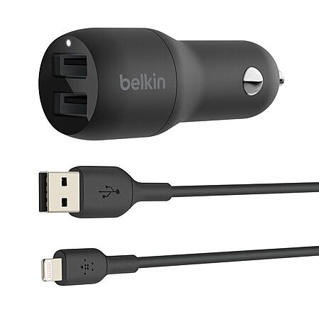 Belkin BoostCharge 24W (2x 12W) Dual USB-A Car Charger with Lightning Cable $5.99