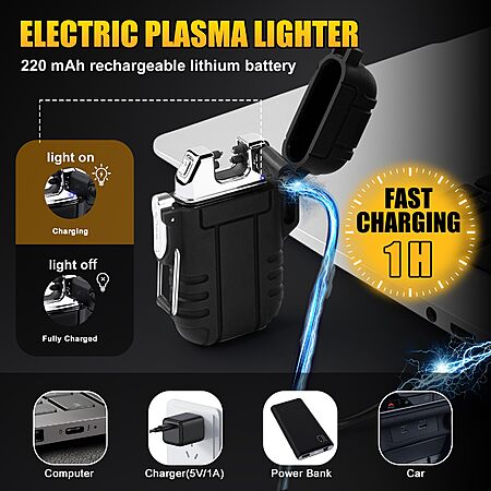 LcFun Dual Arc Windproof Rechargeable Electric Lighter (Black) at Amazon $8.25