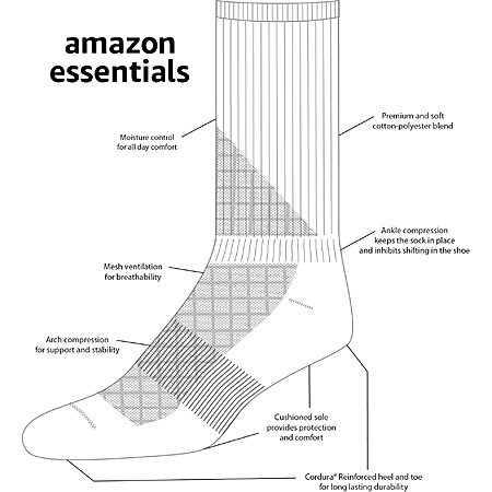 Model: Amazon Essentials Women's Cotton Cushioned Performance Work Crew Sock, 4 Pairs, White, 6-9