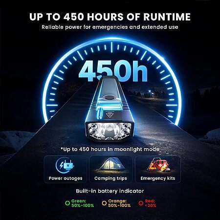 - Battery: USB-C Rechargeable (up to 250 hours runtime on moonlight mode)