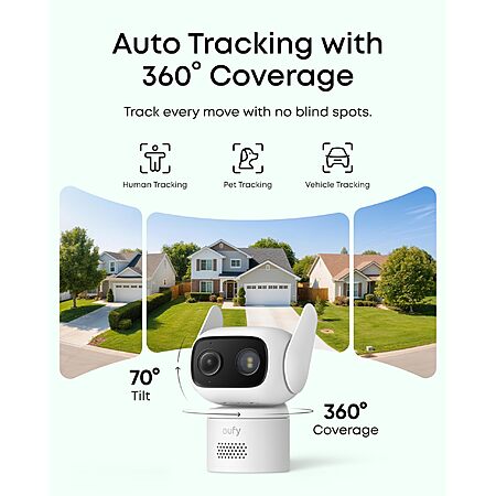 eufy Wired Cam C31, 360° Coverage, Dual Antenna, Color Night Vision, Local Storage, No Monthly Fee, AI Human/Vehicle/Pet/Cry Detection, 24/7 Continuous Recording $49.99