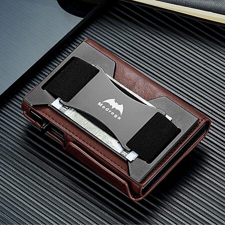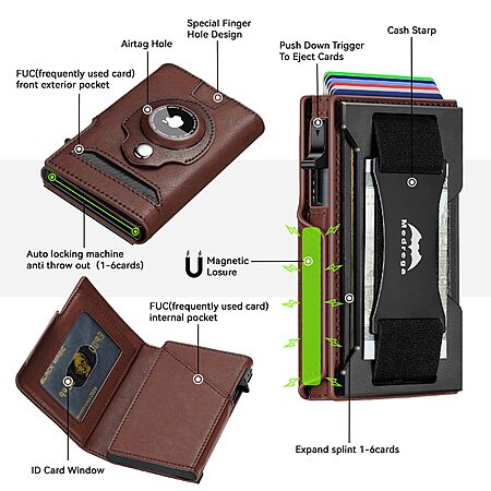 Medrega Men's RFID Biflod Leather Wallet w/ Airtag Holder (Brown) $9.99 + Free Shipping w/ Prime or on $35+