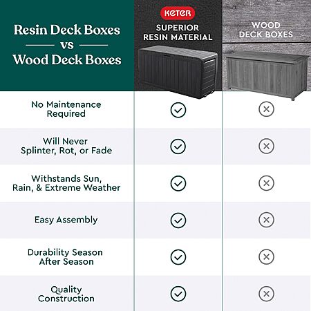 Keter Marvel Plus 71 Gallon Resin Outdoor Storage Box for Patio, Dark Grey - $48.42