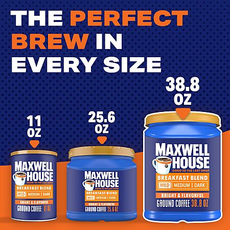 Maxwell House Breakfast Blend Mild Roast Ground Coffee, 38.8 oz Canister $10.46 S&S Amazon