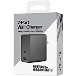 Best Buy Essentials 100W 2-Port Dual USB-C/Wall Charger (Black)