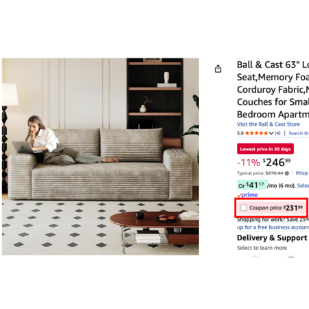 YMMV Ball & Cast 63" Loveseat Sofa with Deep Seat,Memory Foam,2 Seater Floor Couch, Camel $231.99 AC